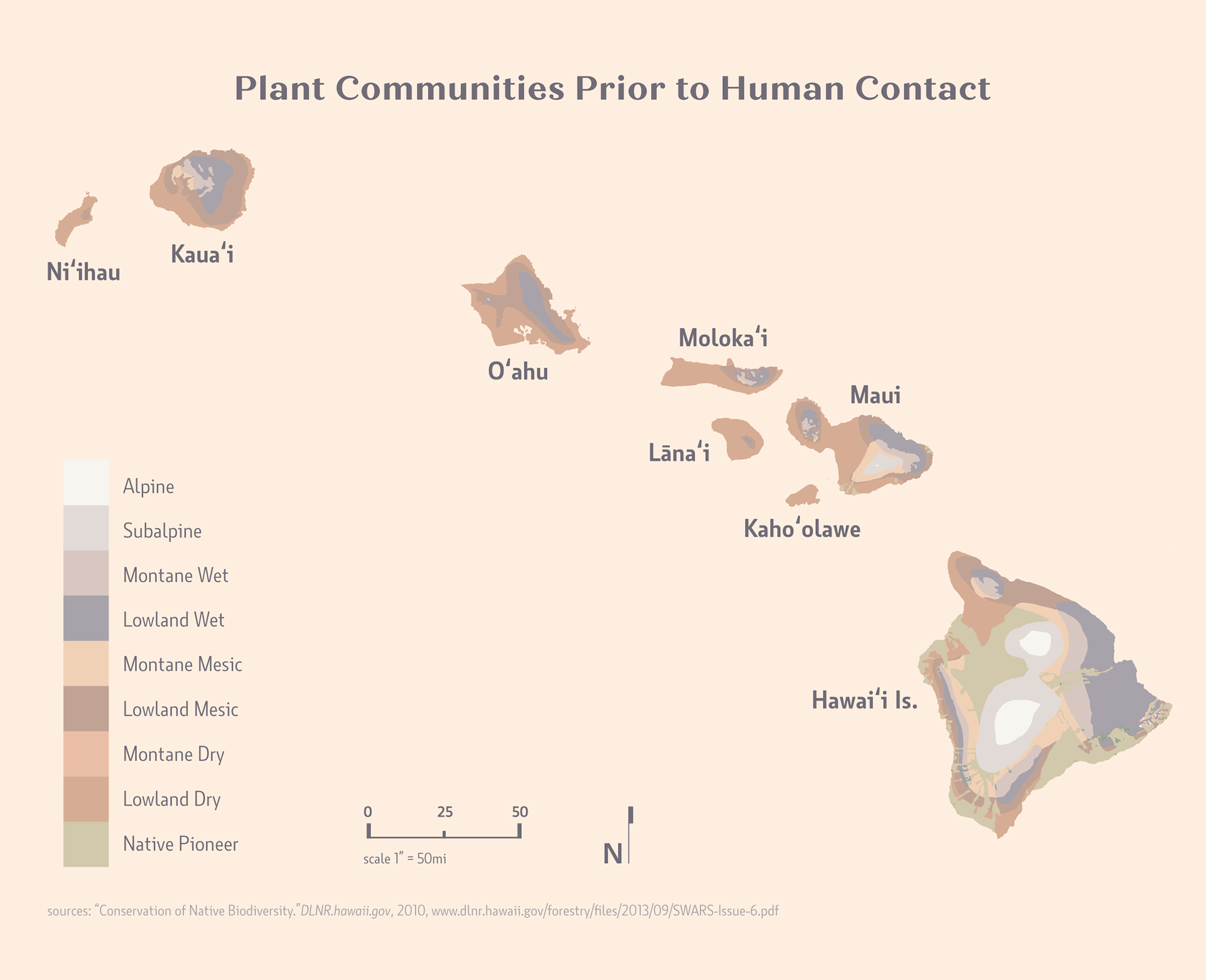 This project delves into the origins of the invasive species epidemic and traces it to the present day. This issue is explored throught the lens of ecology, biology, and landscape architecture. Adopting a scientific perspective, I catalog some of the most pervasive invasive species currently afflicting Hawai’i. The primary objective was to gain a deeper understanding of the invasive species issue as it pertains to Hawai’i